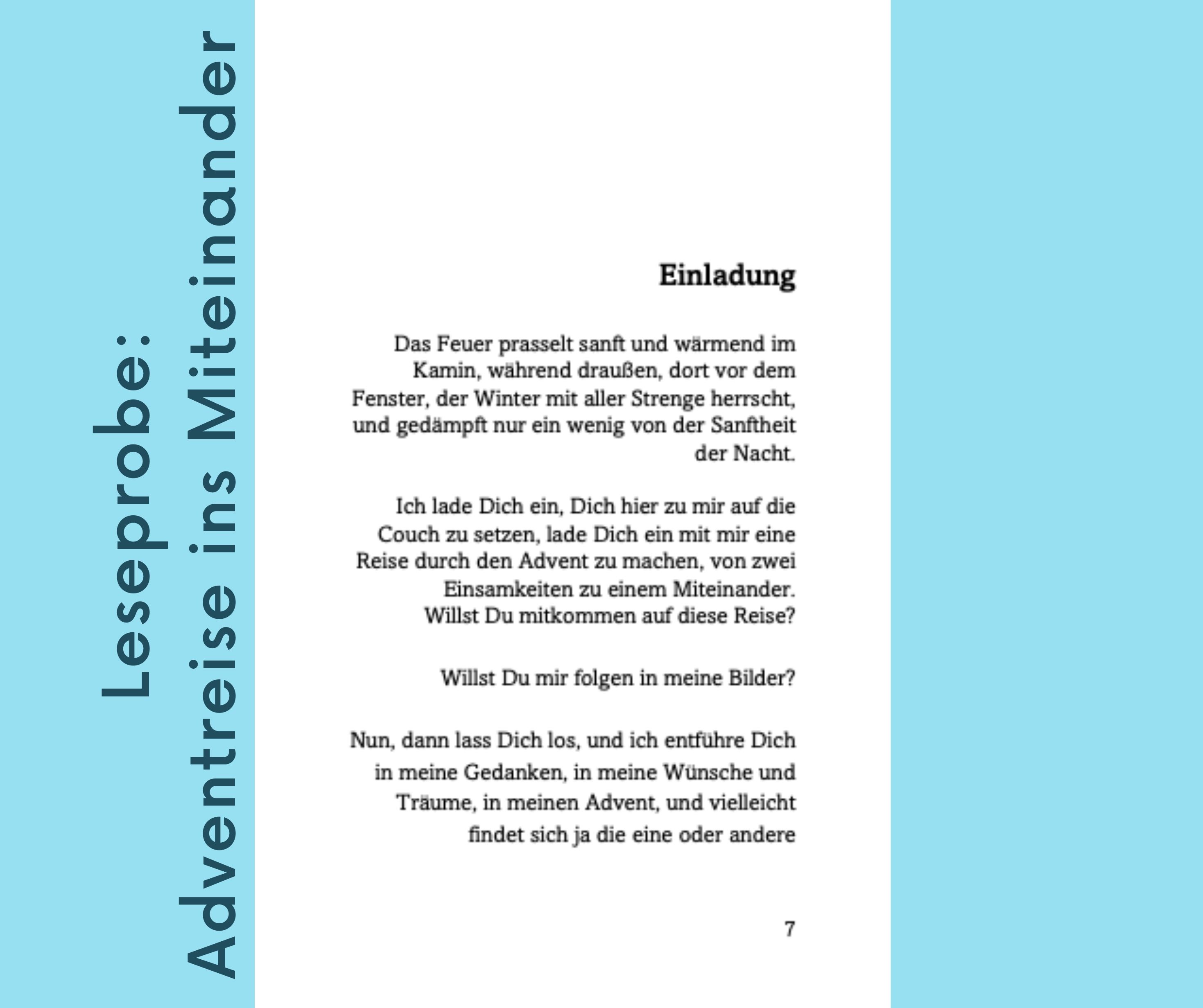 Adventreise ins Miteinander. Das Feuer prasselt sanft und wärmend im Kamin, während draußen, dort vor dem Fenster, der Winter mit aller Strenge herrscht, und gedämpft nur ein wenig von der Sanftheit der Nacht. Ich lade Dich ein, Dich hier zu mir auf die Couch zu setzen, lade Dich ein mit mir eine Reise durch den Advent zu machen, von zwei Einsamkeiten zu einem Miteinander. Willst Du mitkommen auf diese Reise? Willst Du mir folgen in meine Bilder?