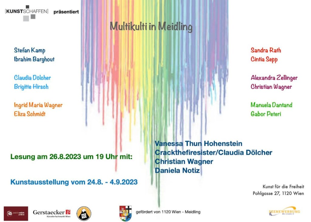 Gemeinsam gestalten wir einen Abend voller Esprit und Flair, ein Abend, der der Kunst gewidmet ist und den Rezipient*innen. Freut Euch auf eine Veranstaltung der Vielfalt, die sich zu einer wunderbaren Einheit ergänzt, auf Kunst in drei Entfaltungsformen.